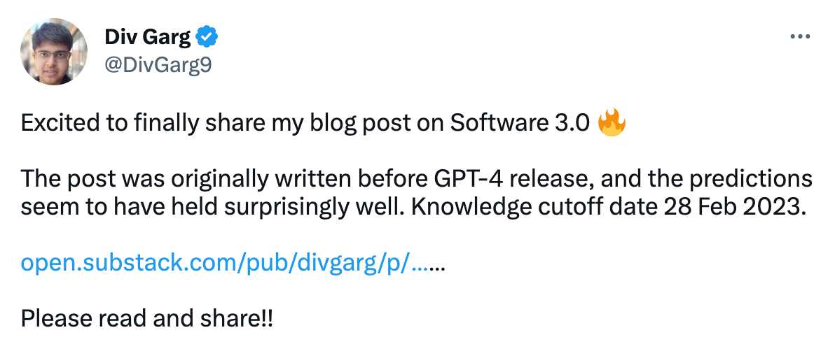 Div (Stanford CS PhD) shared a blogpost on the fundamental shifts in software engineering brought on by the AI revolution.
