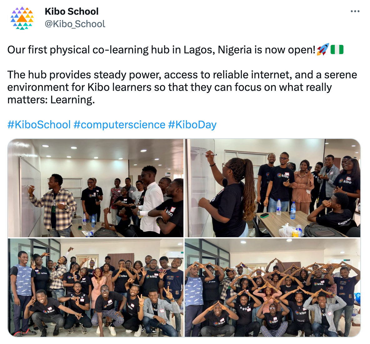 Kibo opened its first physical learning hub in Lagos, Nigeria.